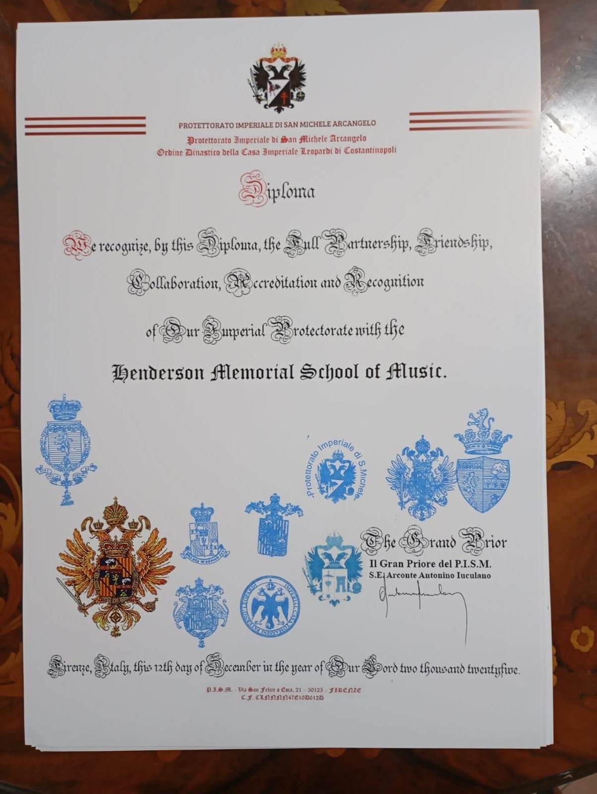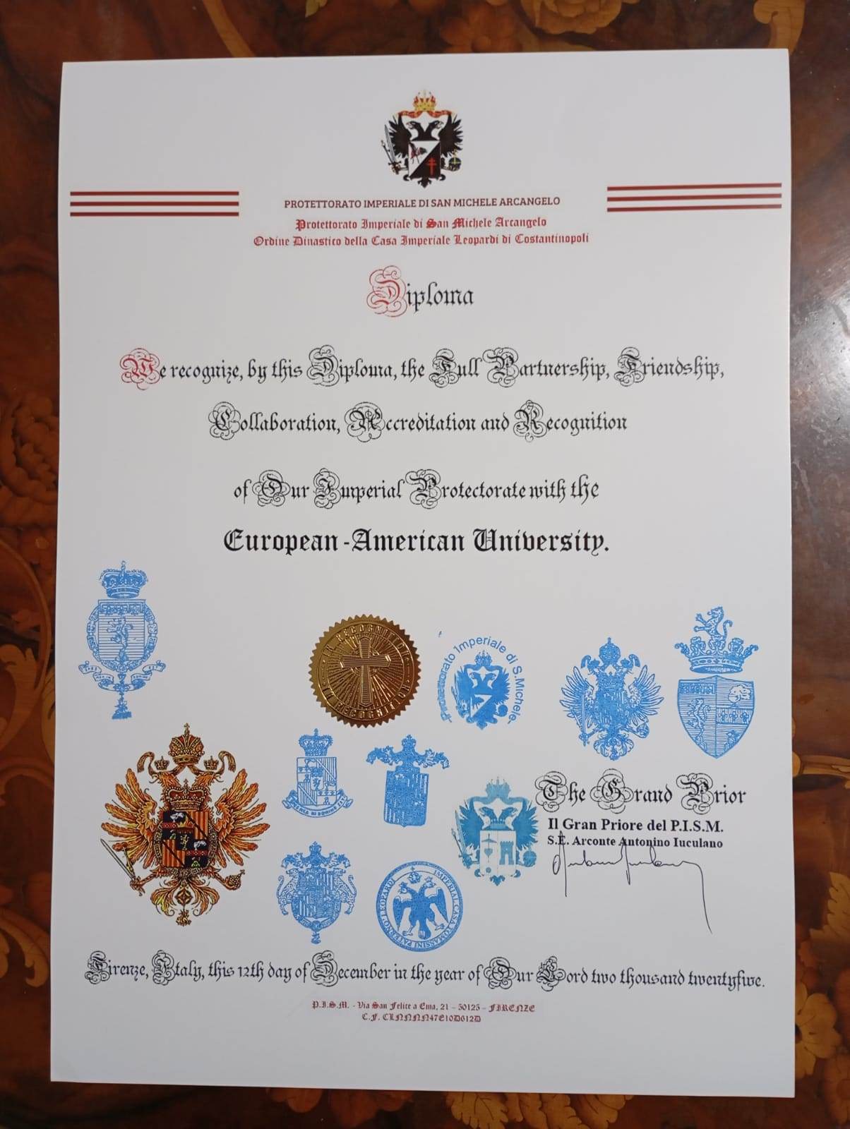 The Accademia Universitaria Internazionale was established in Italy in 1939 by the late Prince Hugo-José Tomassini Paternò, Head of the Tomasi-Leopardi (Justinian-Heraclian) Imperial House of the Eastern Roman Empire. It was registered with the Ministry of Public Instruction and established partnerships with other educational institutions internationally. Today under Prince Ezra, the current Head of the Imperial House, the Accademia has established reciprocal relationships of partnership, accreditation and recognition with a number of our institutions and divisions.