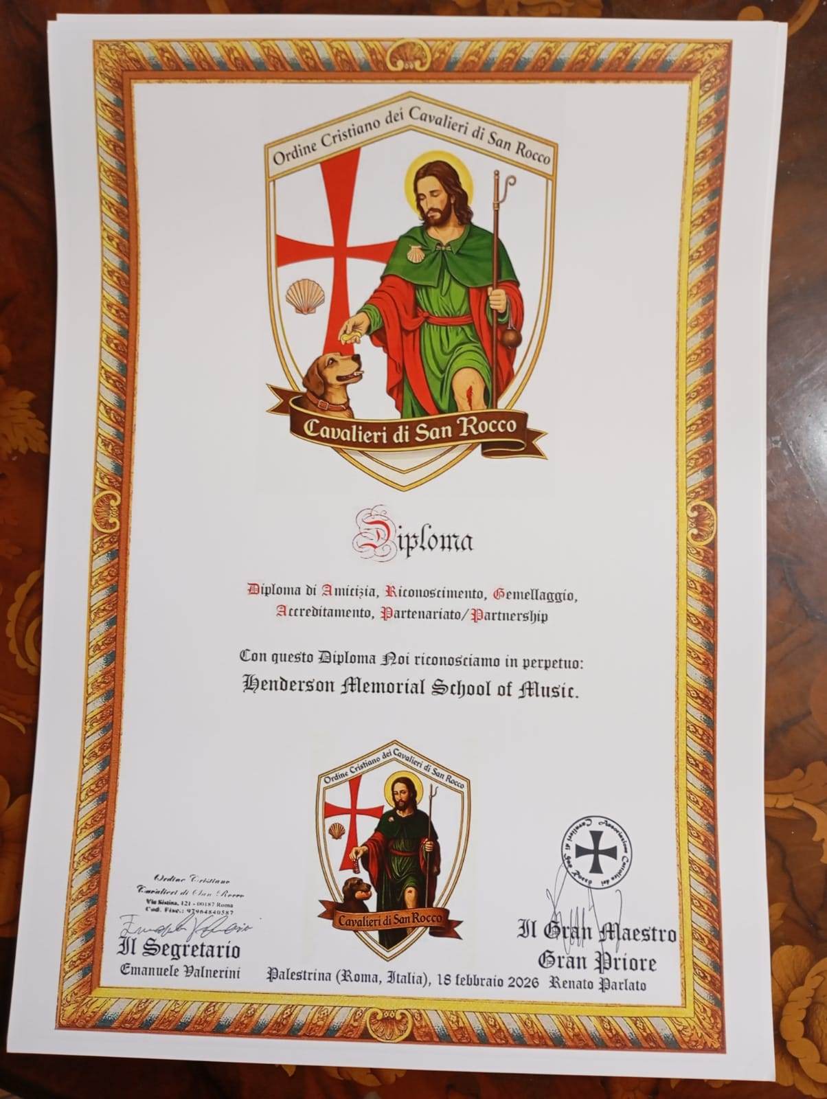 The Gran Commenda di Santi Giovanni e Lazzaro di Gerusalemme is an institution of the Imperial House of Tommassini-Paterno of Constantinople, which is currently based in exile in Milan, Italy. This institution has entered into a mutual full agreement of friendship, recognition, twinning, accreditation and partnership with the University and several of its dependent institutions.