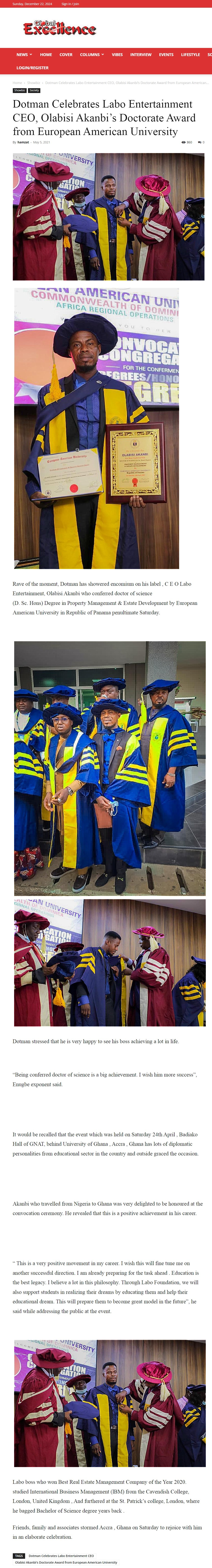 “Dr. Paschal Okechukwu Doctor Of Science In Event And Luxury Hospitality Management #DoctorOfLiqourlogy I Know My Mom Is Up There Smiling, I Have Done So Much In My Little Age. Congratulations To Me.”